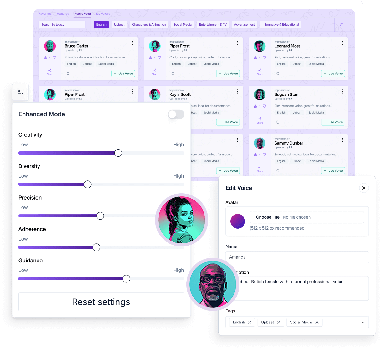 With a wide range of voices available, or the option to make your own, you can find the perfect fit for your characters. Adjust them however you like to match the tone and personality of your story, making it feel authentic.